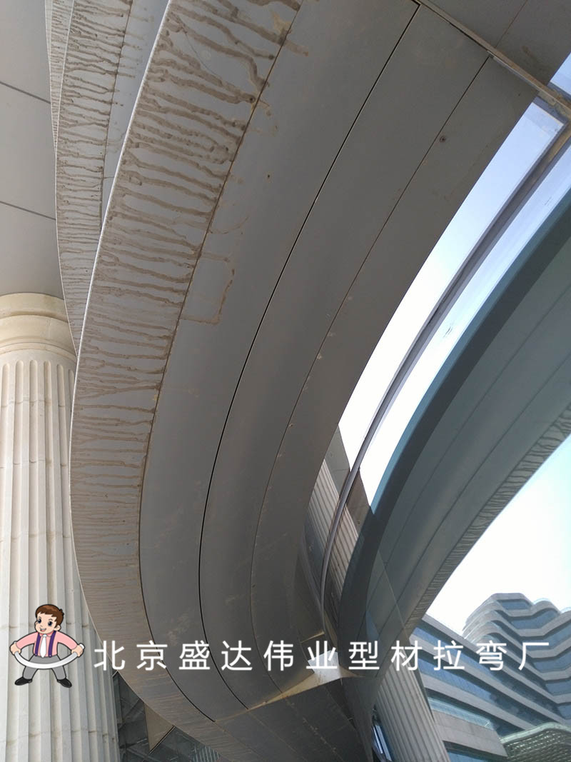 2、 北京盛達偉業型材拉彎廠的科研人員和技術工人經過苦心鉆研,設計出了獨特的工裝夾具和成型模具,使得拉彎過程中型材的截面變形相當細小,從而也保證了很小的尺寸變化,拉彎完成后很方便客戶的組裝加工,也使得拼接后的遮陽百葉接縫均勻,整齊美觀,提升了工程的外觀質量。